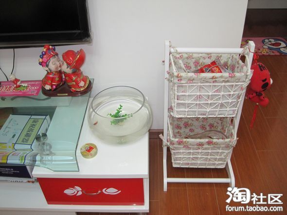 可怜的小鱼就一条了,旁边的田园杂物筐和五斗柜是一家,98元TB买来的,很实用~~·