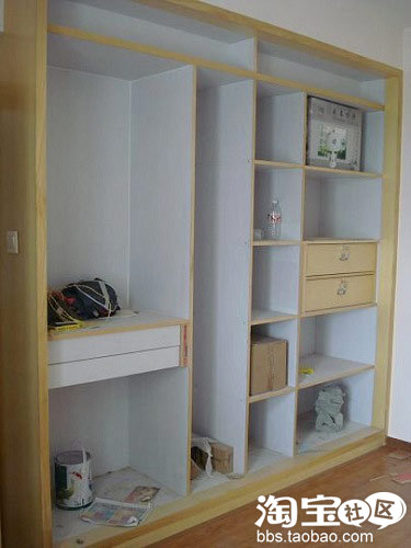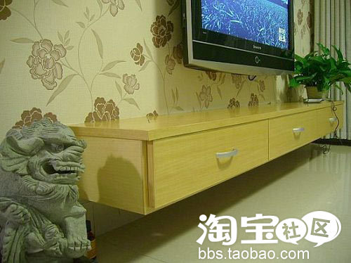 电视柜,很简单,房子小嘛,工人按我给的图纸打的——