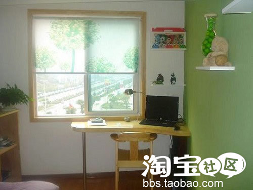 次卧以后准备给小朋友用的,但我没有完全按小孩子房的样子装修,考虑到现在可能更多的是自己上网呆的地方,所以次卧我是把一面墙全刷成了绿色,其它还是白色,效果还可以哦。转过来,这里放了一个1.2米的床