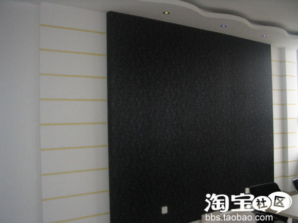 电视背景墙,这面墙 ,有2.7米高,5米宽,所以只能从倾斜的角度拍摄,中间部分是黑色的壁纸,听说,黑色,放上电视后明显一些。电视墙只所以做这么大是因为1、客厅大电视墙小的不协调。2,是因为这个墙中间和右面是2根钢筋水泥的柱子,去不掉也留不得。所以只好做个大的电视墙全部遮住。