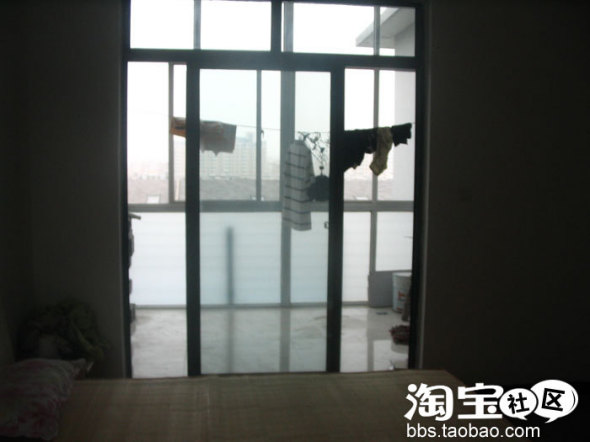 从卧室看阳台,这个阳台原来是个露台,自己用铝合金封起来的,封起来就凉快多了,还没有收拾,放着一些垃圾,比较乱。