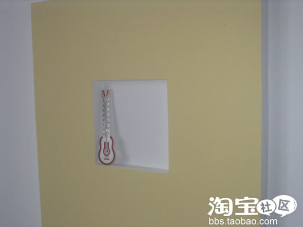 造型的洞里放着我现在唯一的一件装饰品,是一个小提琴的温度计。来给他一个特写