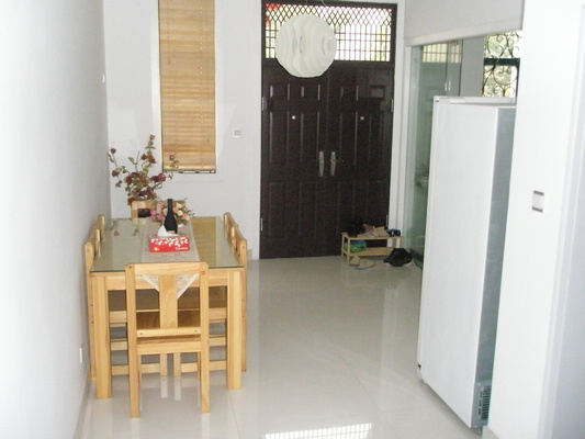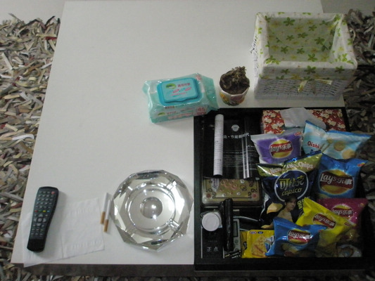 一桌6椅子价格2100+100物流费,桌上的桌旗也是淘宝的,这个桌子的木料是松木的,好看不中用太软了,还有烟灰缸是和碗一套的56头价格350块包运费,门口的鞋架也是价格好象是20块,忘记了