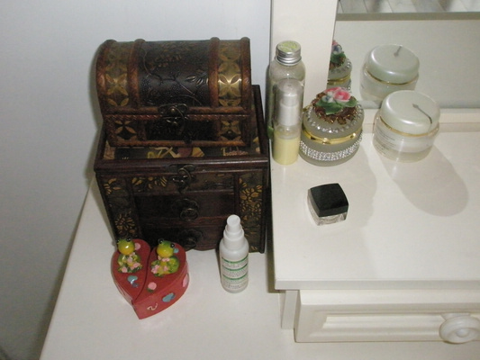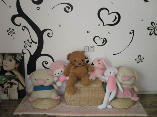 梳妆台,也是要自己凑的和床是一套的,(自己凑真的是很辛苦哦,还好我老公会帮我)价格2200加一张梳妆椅子,没照出来,桌子上的化装盒仿古的 ,娃娃一直都很喜欢,因为小时候家里没这么好的条件嘛,都买不起,现在自己经济独立了就给补上。这些都是还有墙帖,地垫,这还有剩下几只了都让我给小朋友了。