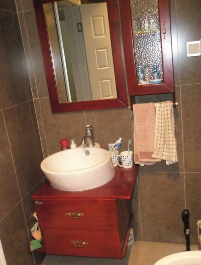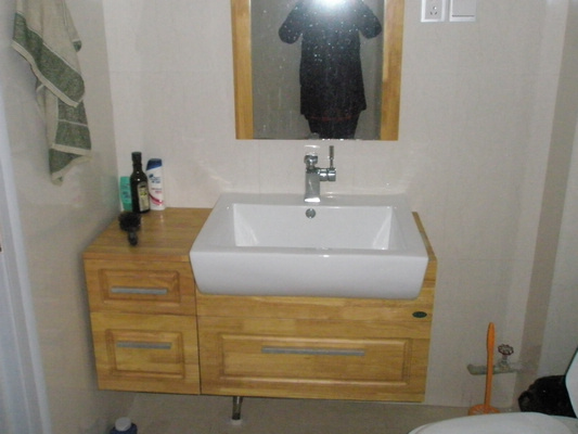 2楼洗手盆整套1300块龙头是180块左右,这个柜子比3楼的质量好多了,一分钱一分货。就是因为想省点,然后100块的小壁柜却没有配起来,真是不该省的省,该省的不省。