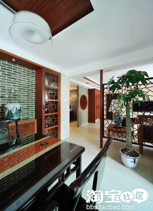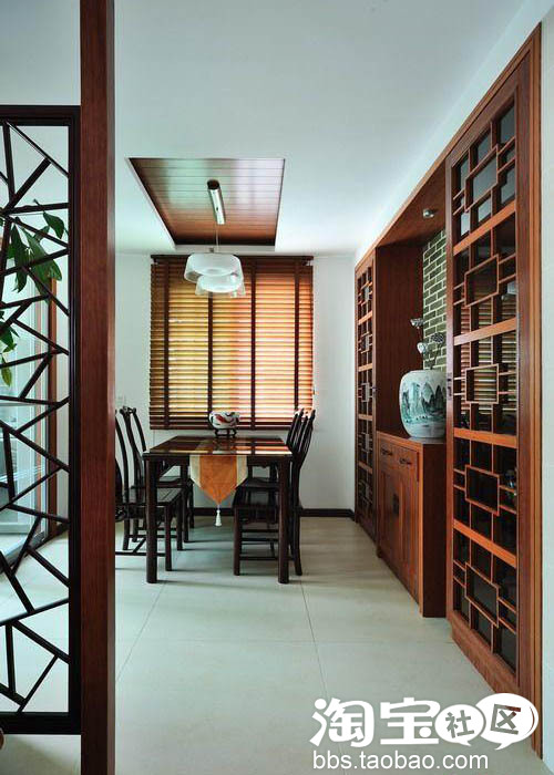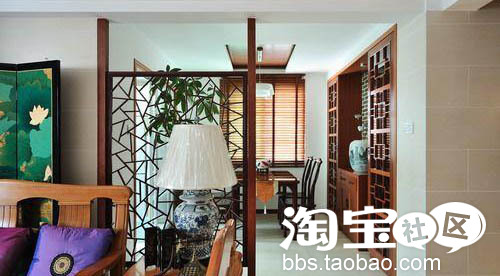 用一片花格巧妙的隔开了餐厅和客厅,显得极有古典韵味