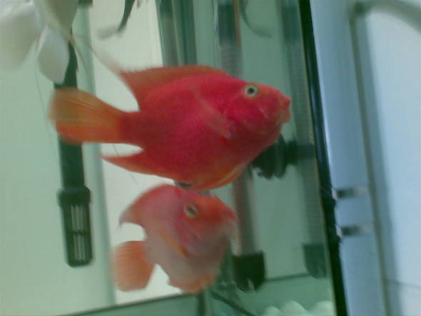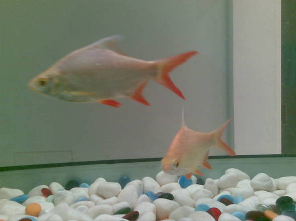 你家养的小鱼很漂亮可能手机效果不行吧,不过相信应该是很漂亮的,你们两个人又养鱼,又养花的,好有生活情趣啊!
