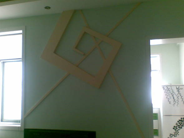 MS效果真的不太好啊,先凑合看吧,这是进户门的位置,值得介绍的是这三个圆形,最上面的这个是可以活动的,能拿下来,挡住了我家原来很丑的接线盒,不错吧,偶自己设计的呢