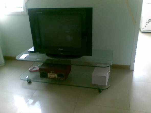 电视机和电视背景墙,电视柜也是个茶几,淘宝上买的,700多米吧,里面还放着我家的老古董,一个木制的唱片机。后面的冰箱看见了吗,呼呼,贴纸偶自己做的啊!