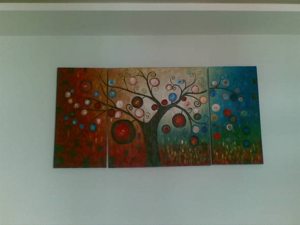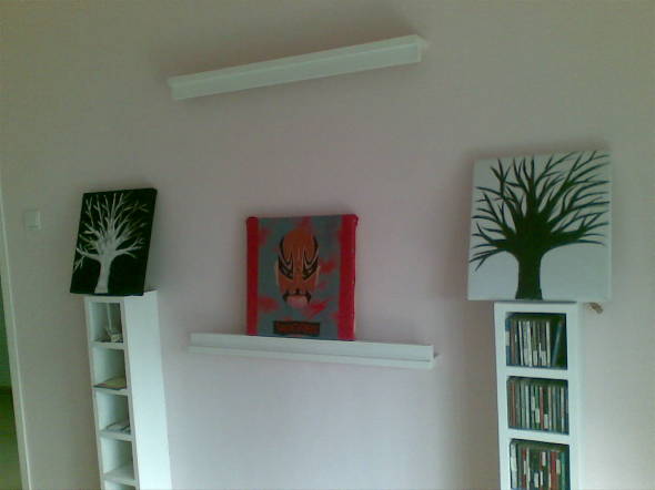 这是个CD架,准备中间再挂个小液晶电视,很享受啊!两幅画还没有挂起来啊,等找个合适的位置。偶自己画的啊!偶是才女呢,嘿嘿