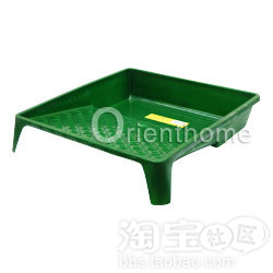 托盘:这是将多余的涂料在上面刮去时用的,这 样涂料就不会到处滴,既不方便打扫,也浪费涂料。不过,一般涂装师傅很少买托盘,而是将油漆桶盖当托盘用,用后即弃。DIY的朋友也可以根据自己的实际情况,在刷漆之前买一个托盘,商店里都会有卖的,用托盘可以保证每涂刷一滚,滚筒上的漆都是一样多的,这样就会刷的很匀。