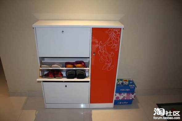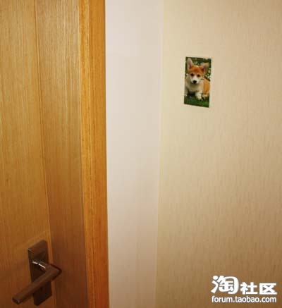 还有地上的垫子、墙上的可视门铃和挂衣钩、门上的贴纸,以及墙边的鞋柜(可以放12双鞋和其他物品)也是网购的。