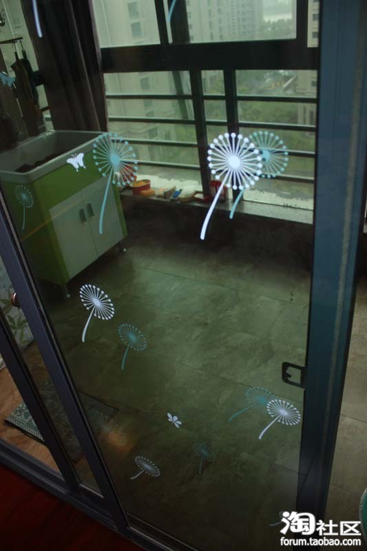 主卧的玻璃门上贴了网购的浦公英玻璃贴(避免没看清撞玻璃)。
