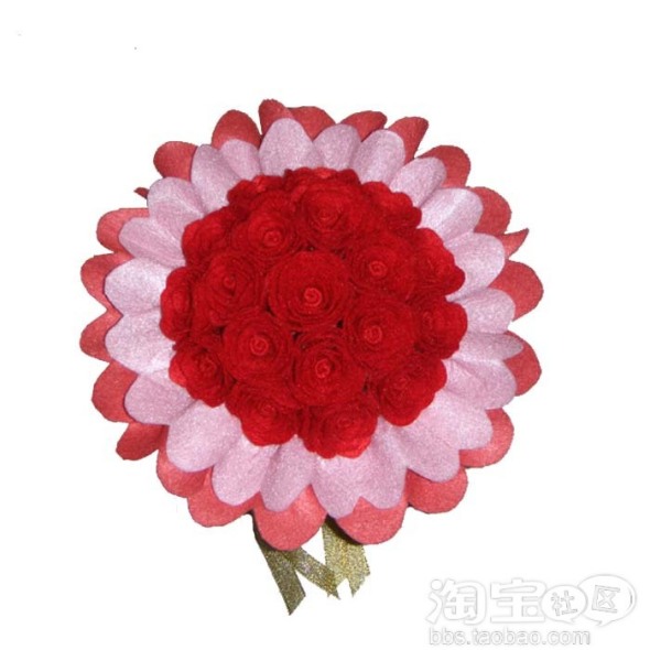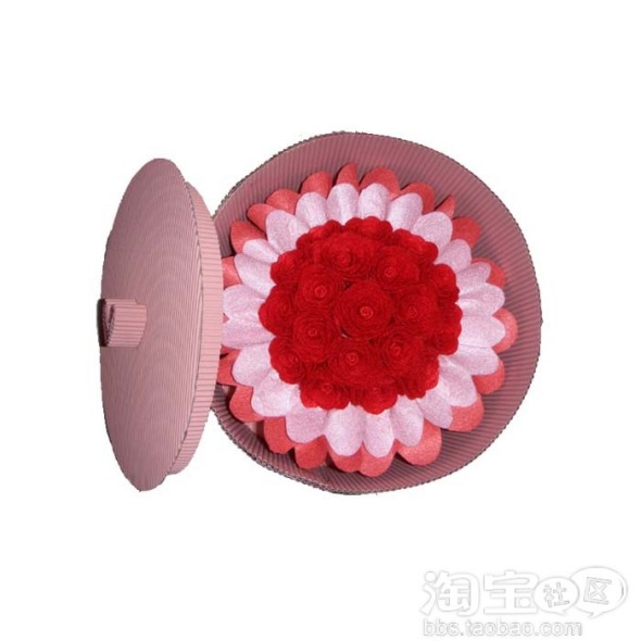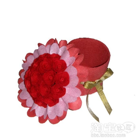 一个失眠的夜晚,我在想明天的创作,想到在情人节那天,我希望收到什么样的礼物。女孩子都喜欢收到花,哈哈,当然我也不例外啦,可是,鲜花放上几天,就会枯萎了,虽然强硬地放多几天,不想扔到,但是斗不过时间,到了花会萎了的那一天,想不扔也没法子,最后还是依依不舍地,慢镜头地放到垃圾桶,然后坐在旁边发上好一会呆。如果可以收到一束永不枯萎的玫瑰花,那该多好呀,于是,我一步一步地想出这个点子,天一亮,就起来动工,嘿嘿,好开心,成功了啦,现在发图给大家看看,不单是束花还是一个置物盒哦。