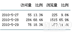 上图左侧中间图片的位置。这是发表当日和前后两天的访问量比较,