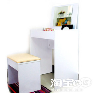 大门右边放两用梳妆台,可变书桌,平时可以用来看书(89元)。