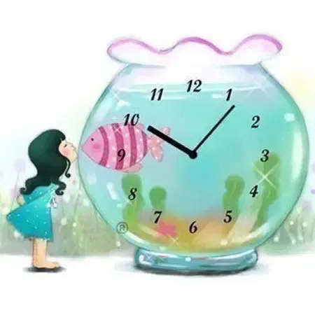 么么鱼厚板单块 兰海无框画艺术挂钟