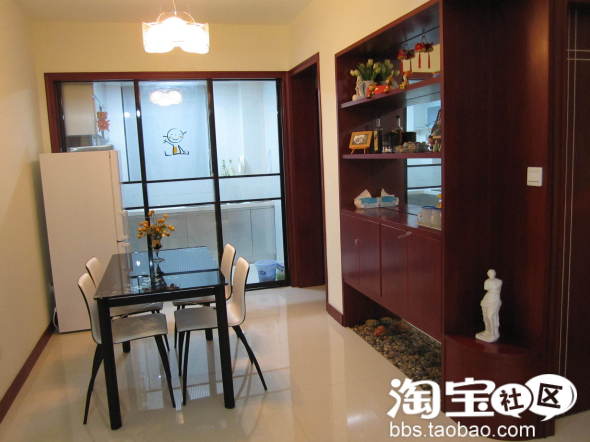 隔断厨房与餐厅的玻璃门,本来这个门打算不要的, 做个开放式厨房,可是本人极极讨厌油烟漫天飞舞,所以为了大家考虑,只得装个玻璃移门, 没想到装出来之后,效果真是不错。