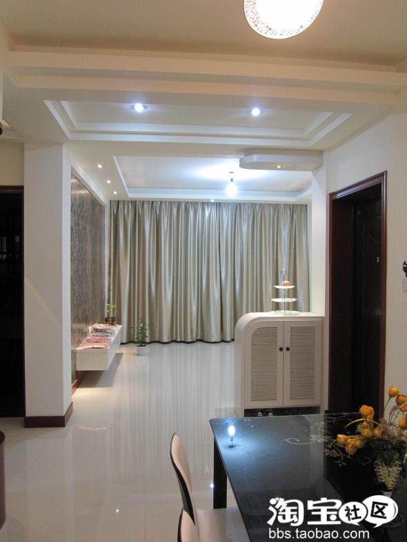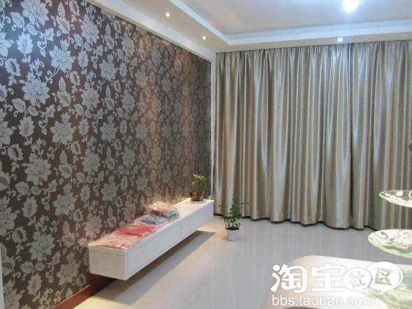 原先计划是寻找咖啡色调窗帘, 欲与背景墙的墙纸配套,可是实在是太难找寻,于是寻找这个银白色, 效果也还不错, 而且价格也不够,好像25元/每米,网上估计还要便宜些。