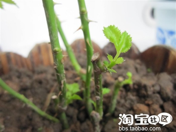 复活的玫瑰,蚂蚁都啃了一半的根了,后来经过邵先生的抢救,终于活过来了, 真坚强!