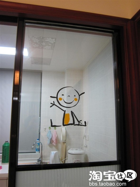 玻璃门上的开心小鬼, 是买另一款墙贴的时候送的,好可爱,每天回家向左,便可以看到他的微笑。