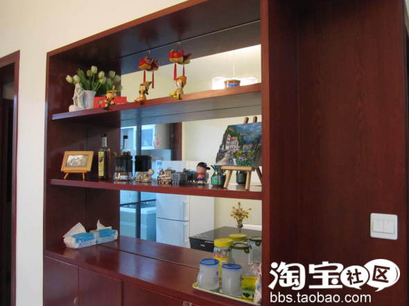 本帖的助威记录:助威总计 18 点 | 查看全部记录>>餐厅旁的酒柜,说是酒柜,迄今未发现有酒上架,都被我那些网上淘来的小杂物堆着,百合花+背篓女和不听,不看,不说的三不小孩来自同一家,淘宝ID ;木木巫画,小火车储蓄罐淘宝ID 为心心向V。
