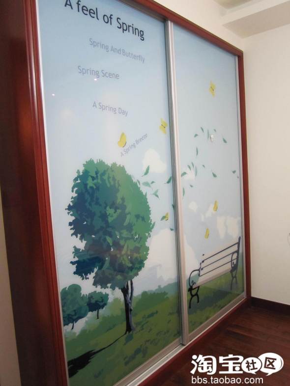 进门对面的玄关,爱情树墙贴和玻璃门上的开心小鬼同一家,淘宝ID为CCIZ ,, 网上火爆款,玫瑰花地垫,淘宝ID :家之宝地毯,只是有点不耐脏。