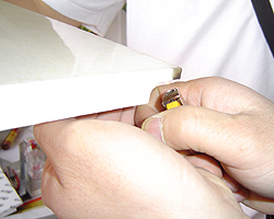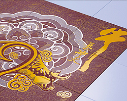 一般来说,目前市面上见到比较多的艺术天花,是采用在覆膜板或滚涂板上,进行印刷的方式,其扣板材料的颜色多选用白色,制作时,将几片成品的扣板用龙骨拼接好,然后,采用类似于“喷绘”或“写真”的方式,将这几片扣板上印刷图案。但是存在耐候性差,容易变色及色彩脱落等问题,且存在色差等现象。