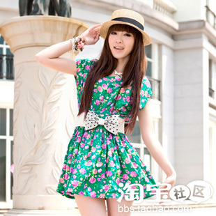 花花绿绿自然褶皱的美群适合夏季的气息,再搭配蝴蝶结腰带层次感就更强了,嘻嘻