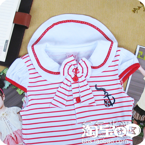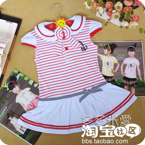 海洋风翻领条纹海军纯棉儿童服饰连衣裙