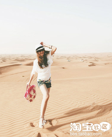 浩瀚的大沙漠里美女也有她的搭配风格,