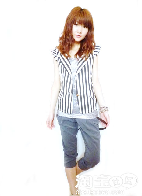 小飞袖小马甲外套+亮片背心+哈伦小脚裤
