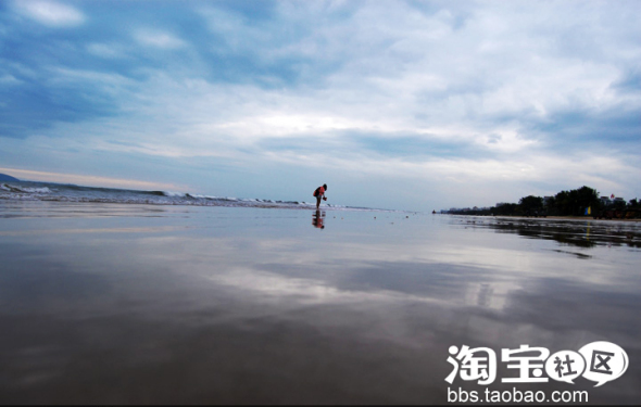 傍晚我们在酒店外的海边游玩,这张照片我很喜欢,我像是走在天与地之间。
