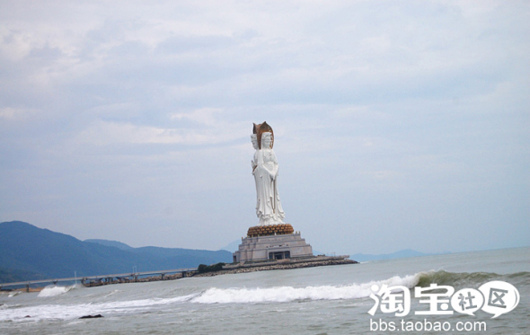 南海观音,有三个面,108米高,造价说是1.92亿RMB,真是舍得呀。。。说是造飞机的什么材料,在陆地上只能看到观音娘娘的两个面,本打算看面朝向大海的另一面的娘娘,可是由于天气风大,快艇不出海。很遗憾。