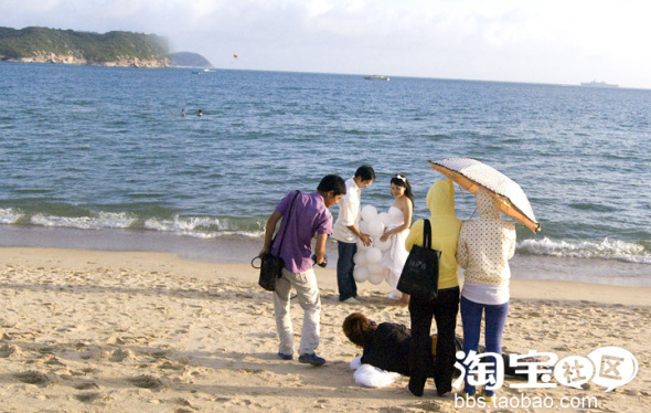 这个是在三亚湾,一对新人在拍婚纱照,,让我想起我们拍婚纱照的时候,也是在海边,不过是在深圳。