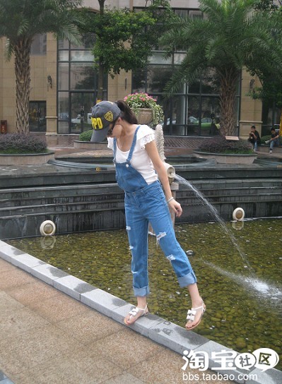很可爱的一款牛仔背带裤。搭配蕾丝袖T。很可爱。