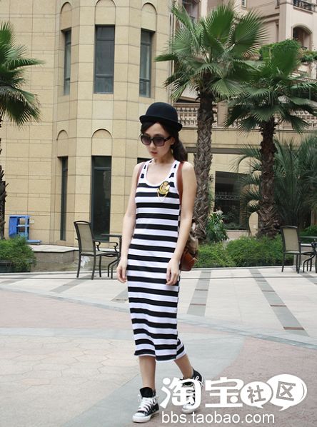 今年的大热款,条纹长裙,欧美流行元素。各大杂志也非常推荐。穿着又特别舒适。