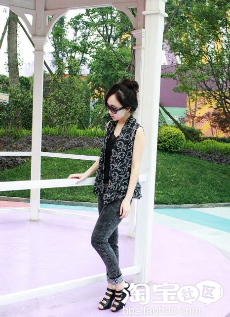 里面搭配的一件雪纺马甲,外面穿件小西装,马甲就成为了很亮点的围巾样式。
