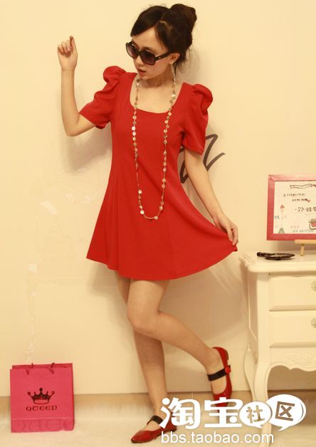 大红色!!!最爱!!!泡泡袖,版型又特别好。质地也非常舒服。穿着很凉快。