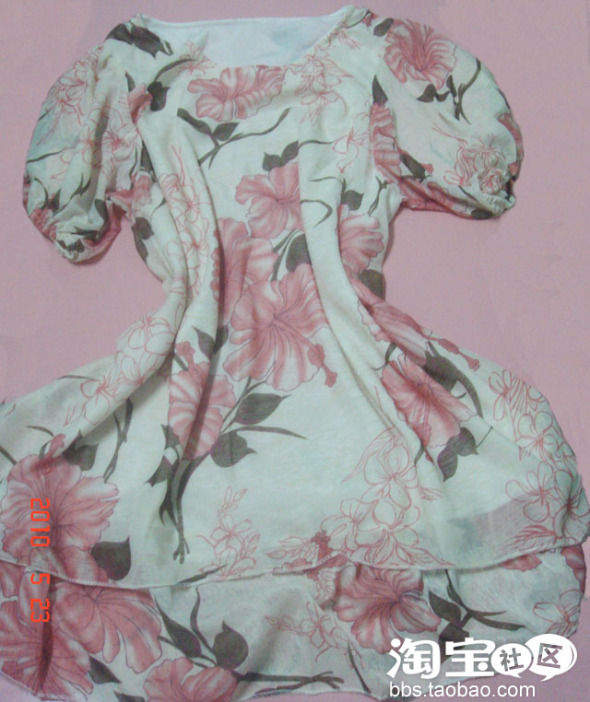 雪纺裙子很漂亮 夏天穿凉快来~也借我做个广告吧,不知道会不会被拍砖,对这些我都是新手,呵呵,店也是刚开,慕名就来这看看了。我传几张我自己拍的图片看看,相机和光线都不是很好,即使加亮了颜色就变了些