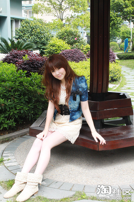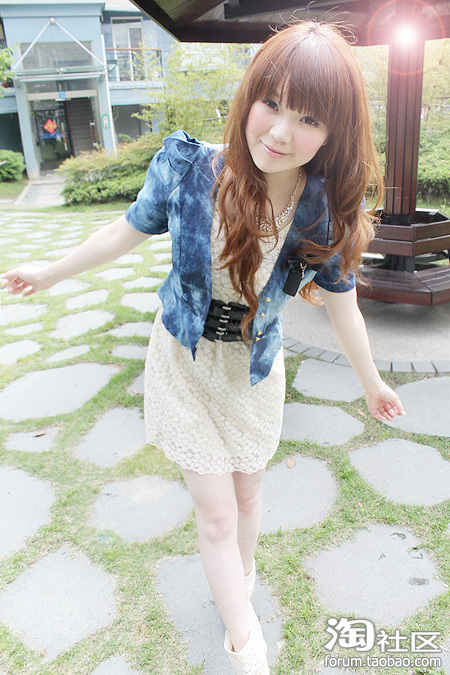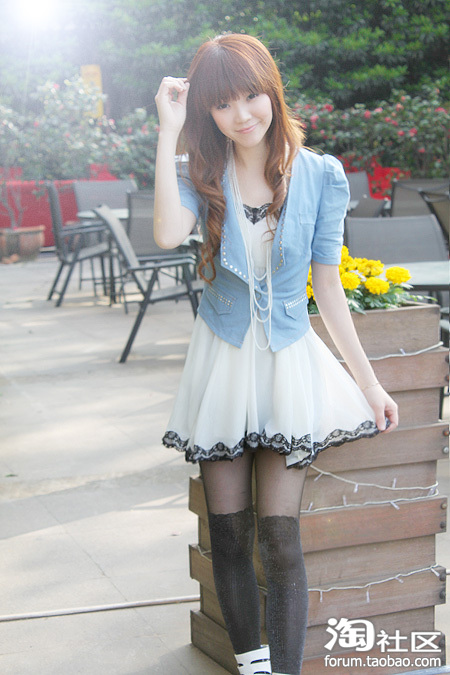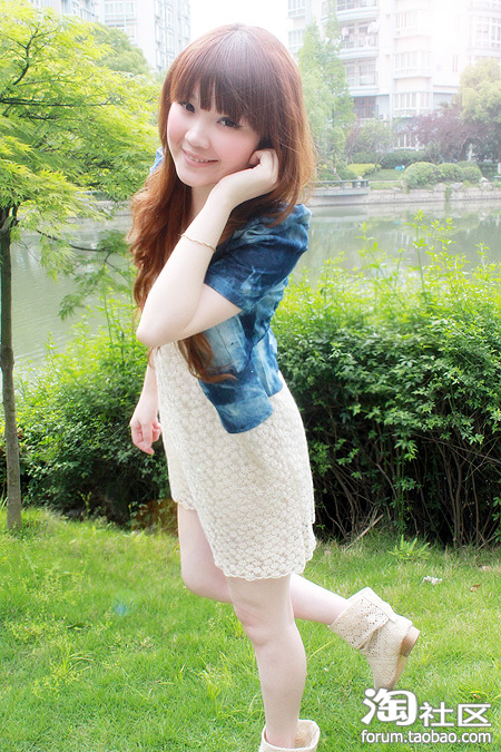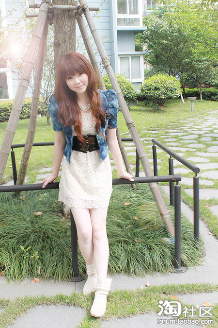 白色的蕾丝雪纺裙加上蓝色的牛仔,颜色搭配绝对是非常合眼