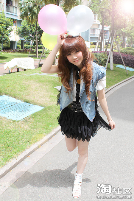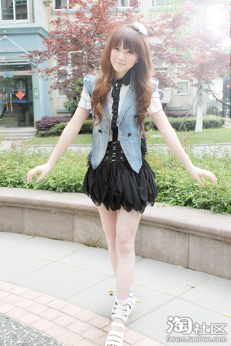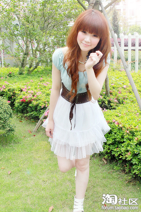 今年很多杂志都流行牛仔蓝+白纱裙+腰带的设计
