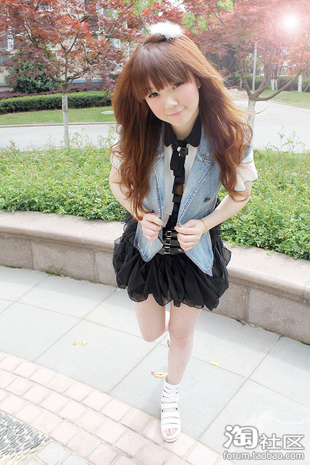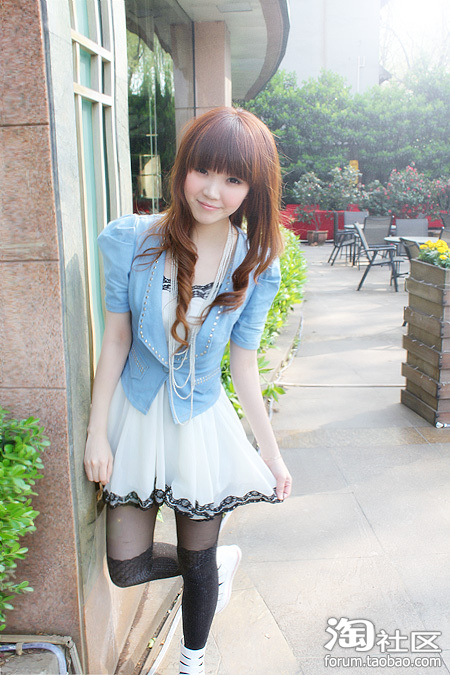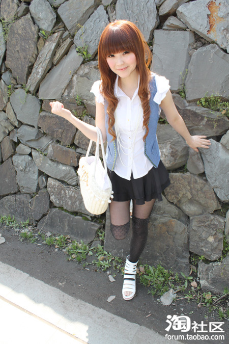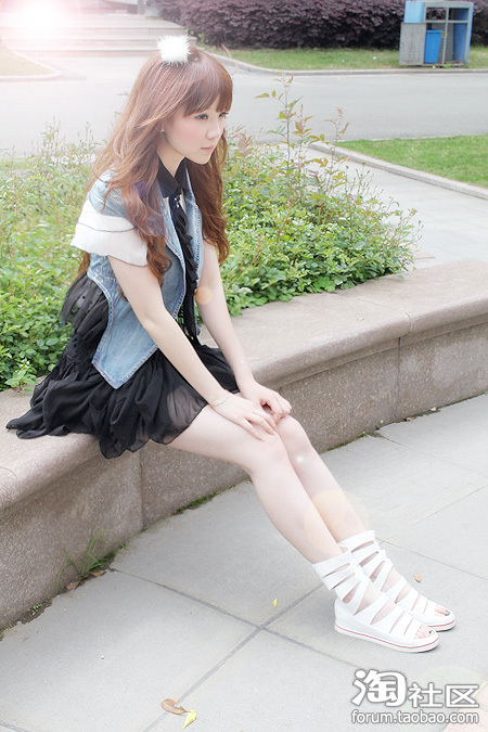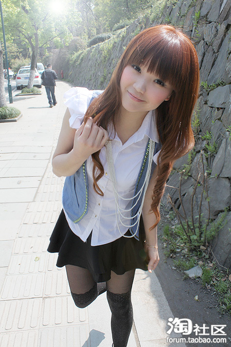 单鞋也可以的恩,都会让人觉得很清新,想装嫩的MM们,都可以试试!