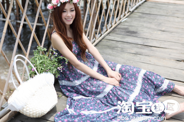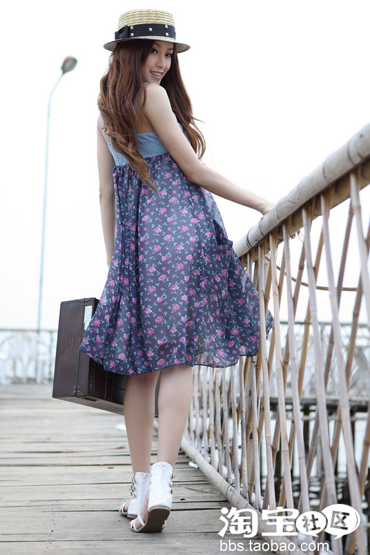 站在码头的一霎那,超有上海小小姐的风范,复古的洗水牛仔布,甜美的小碎花,很有旧上海大小姐的古典和时尚美,裙裙两边配有可爱的兜兜,裙子更加的飘逸和丰盈感,搭配上草帽和罗马鞋打造复古的古典美。
