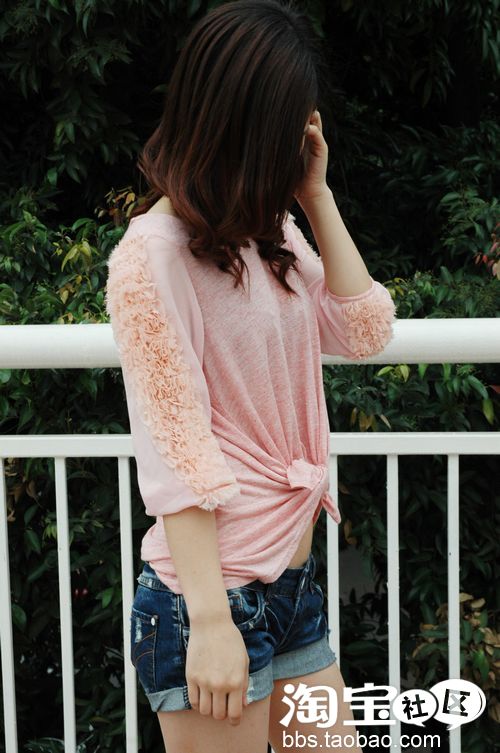 很特别的花簇袖,看上去袖子很粗,可是穿上身