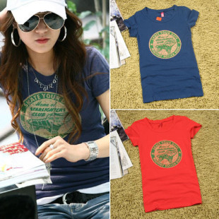 爆款 疯抢2010韩版夏装新款李孝利系列溜冰鞋圆领短袖T恤修身型