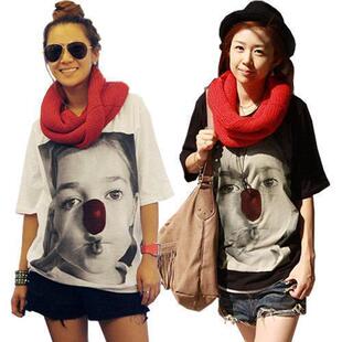 2010春夏装 韩版女装李孝利最新款小丑的红鼻子T恤