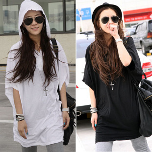 2010春夏装新款李孝利系列纯色连帽短袖长款T恤
