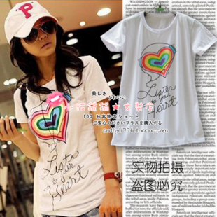 2010韩版李孝利新款彩虹爱心短袖T恤