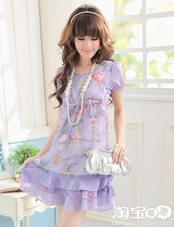 蝴蝶结装饰腰部和多层裙摆,设计别致,丰富层次感,
